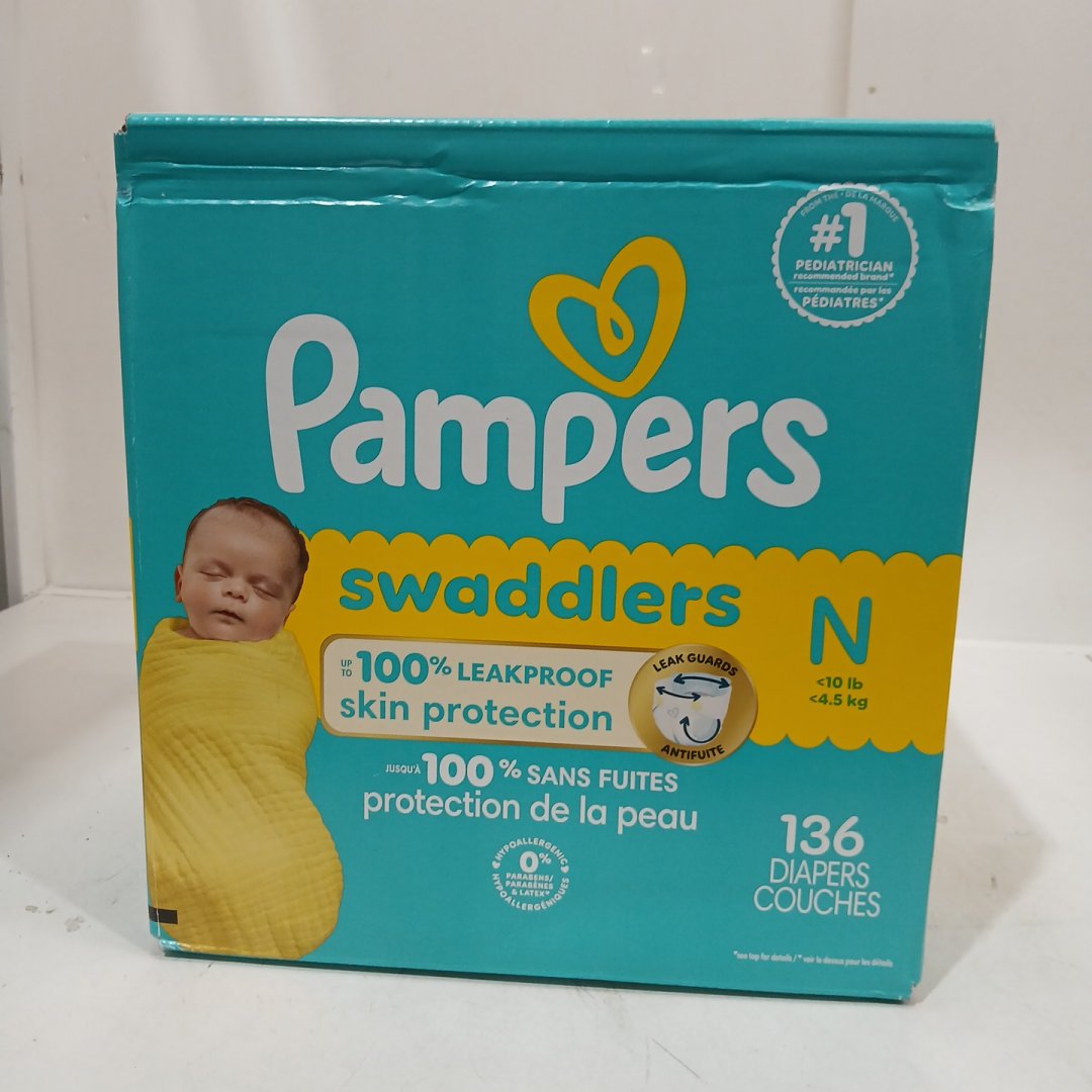 136PK PAMPERS SWADDLERS DIAPERS - NEWBORN SIZE