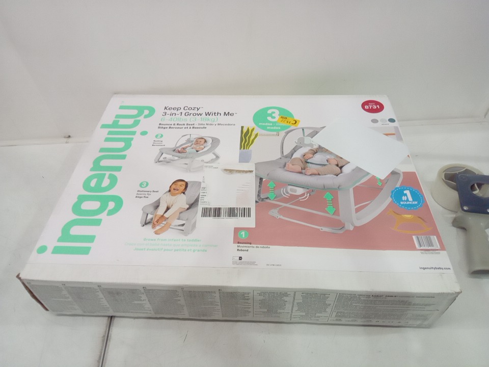 Ingenuity 3-in-1 Keep Cozy Grow with Me Vibrating Baby Bouncer, rocker & chair - 40lbs max- weaver theme- grey/white/green (model: ‎12428)