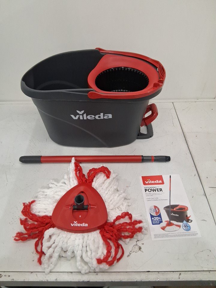 Vileda EasyWring Spin Mop Bucket Floor Cleaning System with Power Mop Head and extendable handle - red/grey (model: 172880/ 10683010609981)