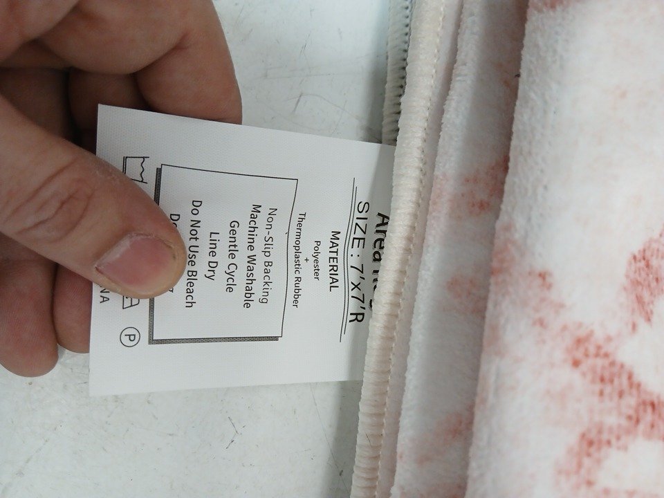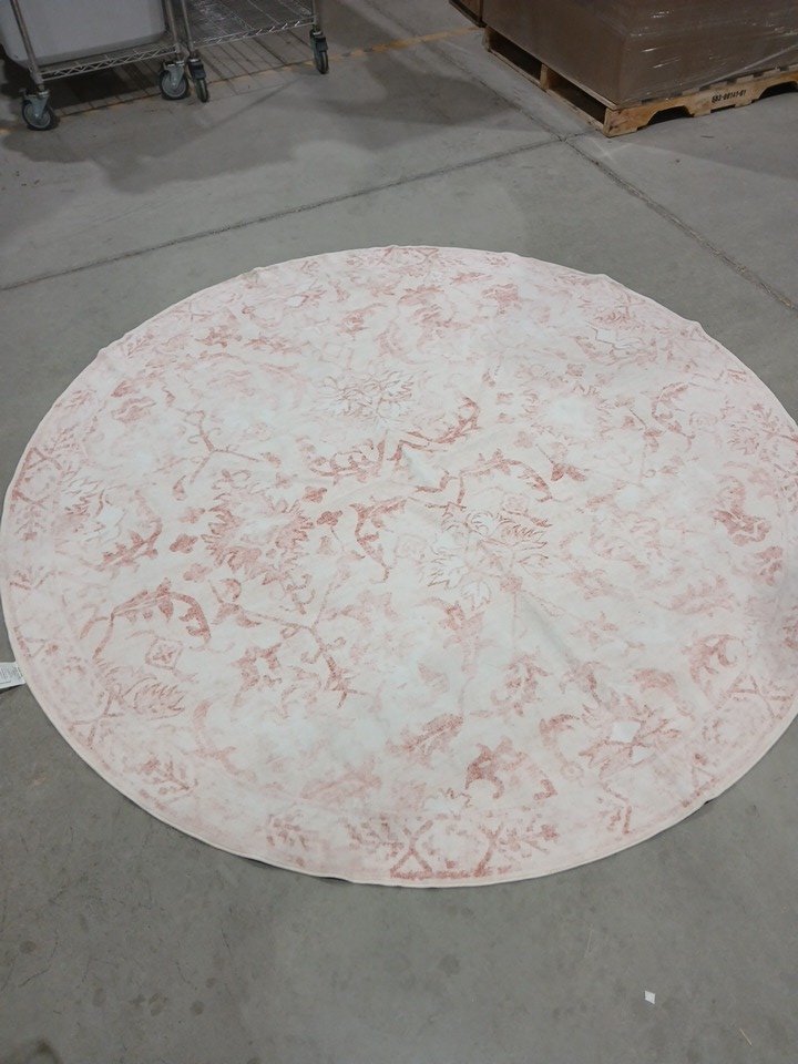 ROUND AREA RUG - 7FT - WHITE/PINK