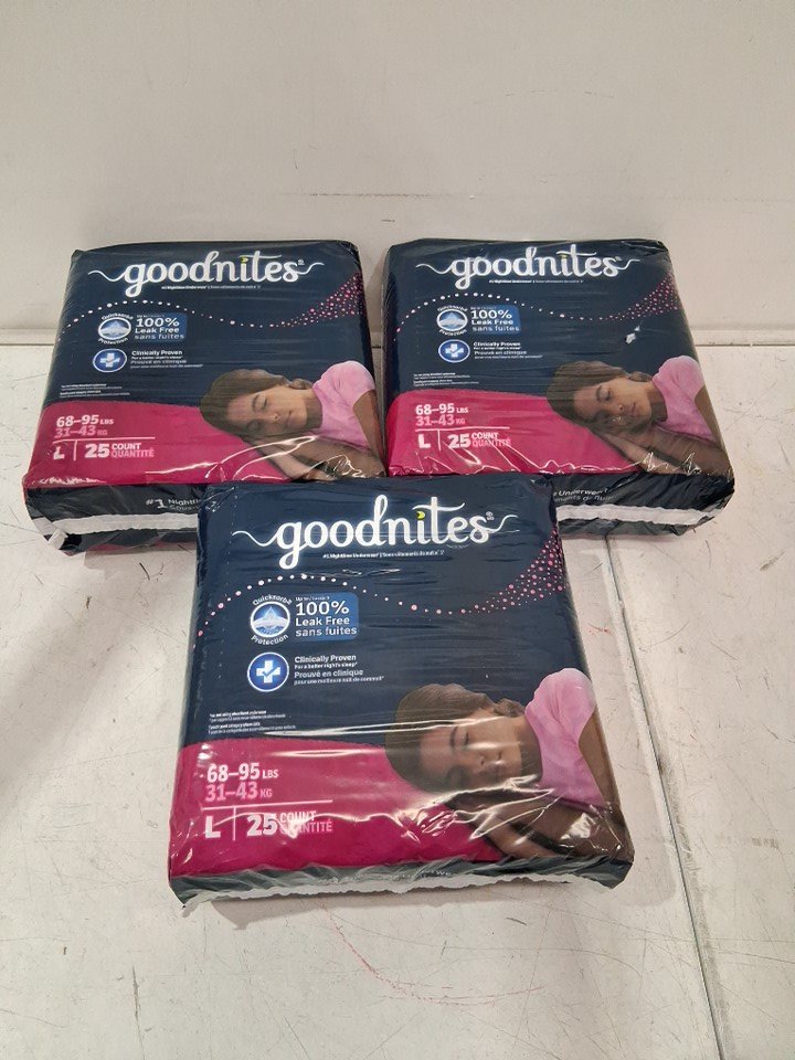 75pk girls Goodnites Nighttime Bedwetting Underwear - LARGE (68-95 lb) - (MODEL: 53372)