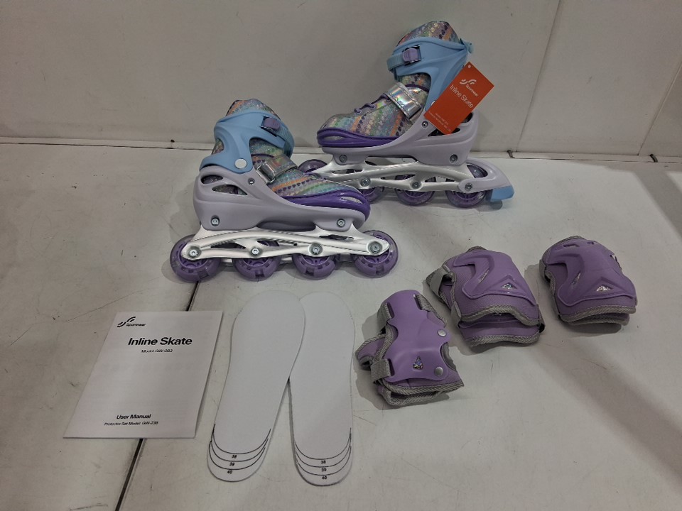 sportneer adjustable childrens inline skates with protective gears - size (38-41) - purple (model: gw-083)