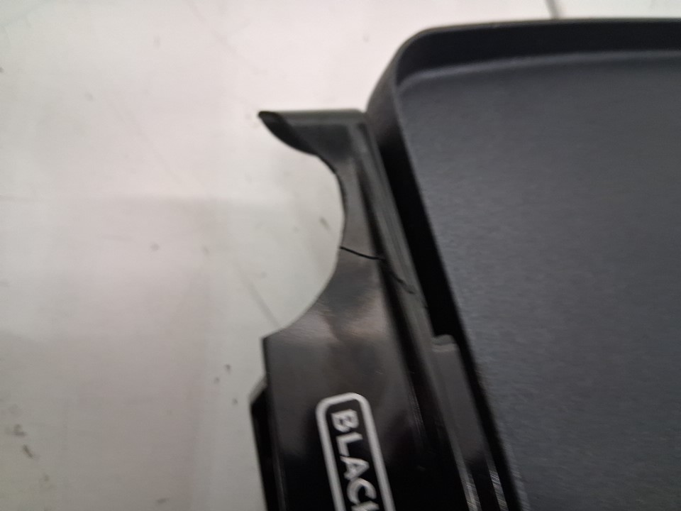 The plastic on both sides is cracked/broken- item still sits flat and works