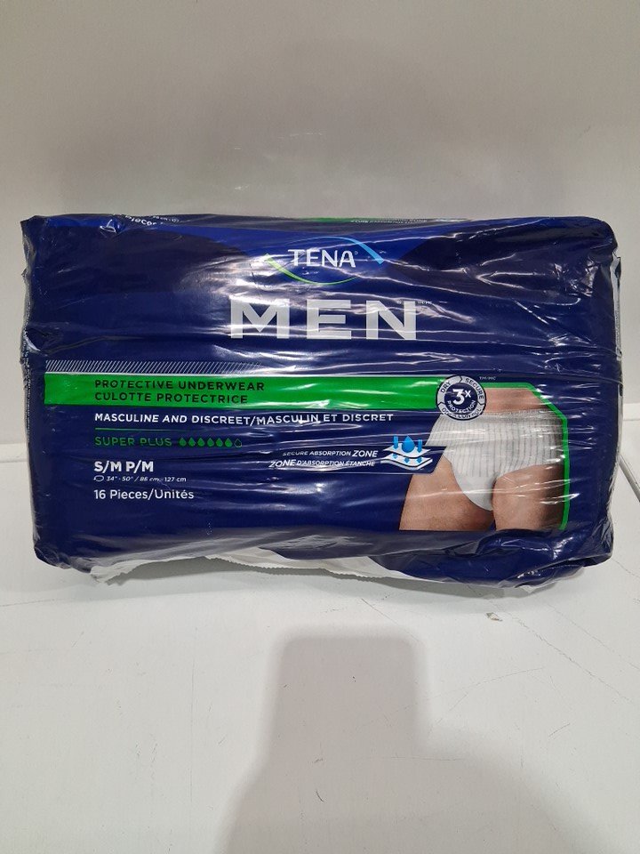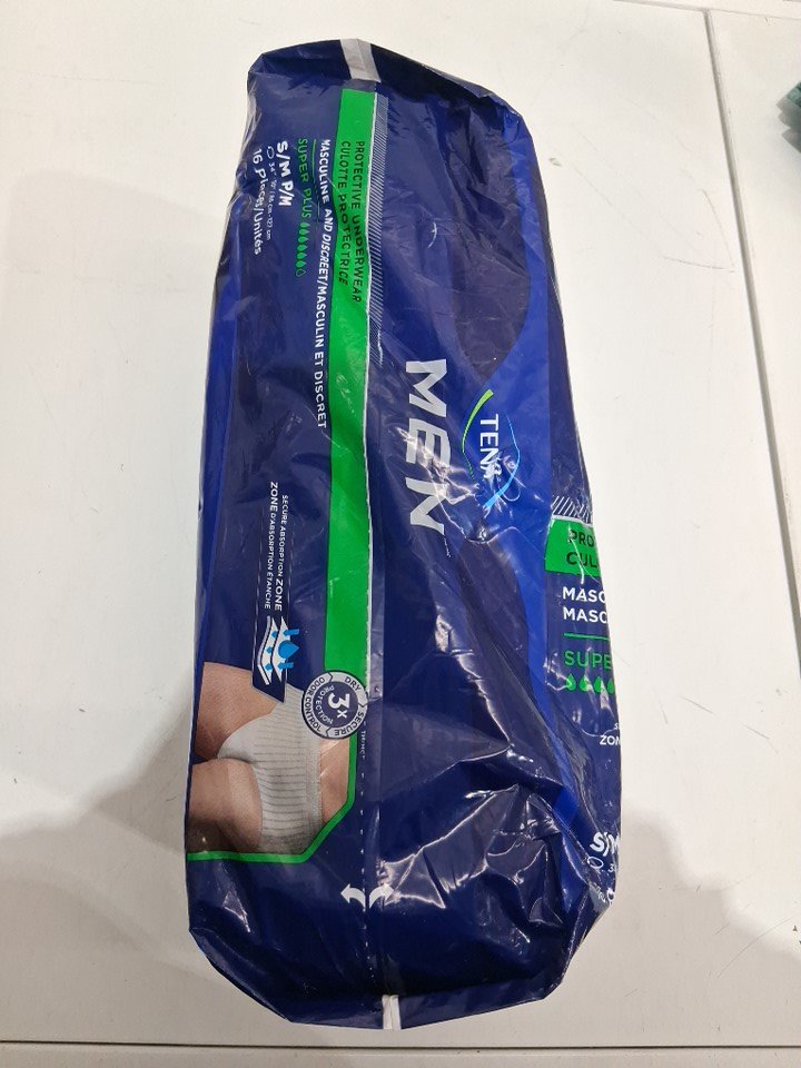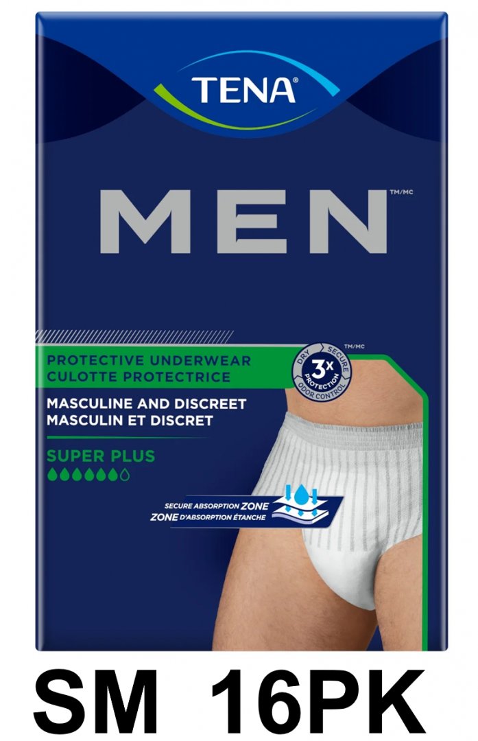 16PK Men's Tena discreet protective underwear with super plus exorbancy - Small - White/grey