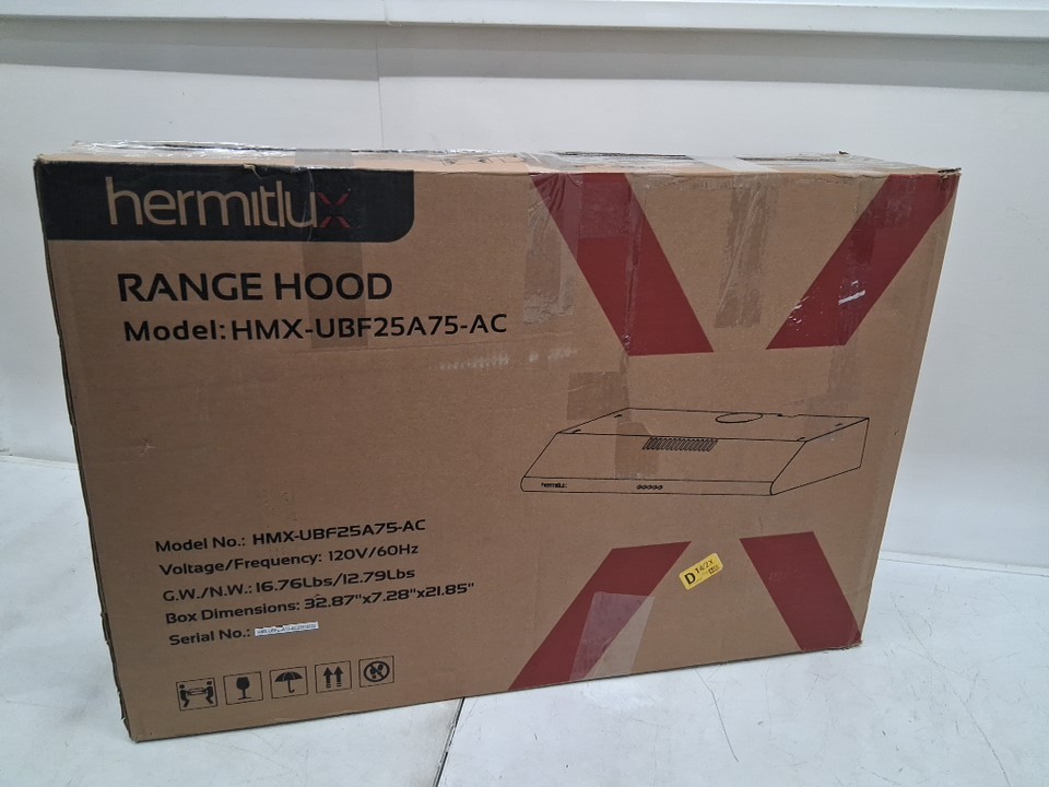HERMITLUX corded UNDER CABINET RANGE HOOD with charcoal filter- 3 speed exhaust fan- 30" - stainless steel/BLACK (MODEL: HMX-UBF25A75-AC)