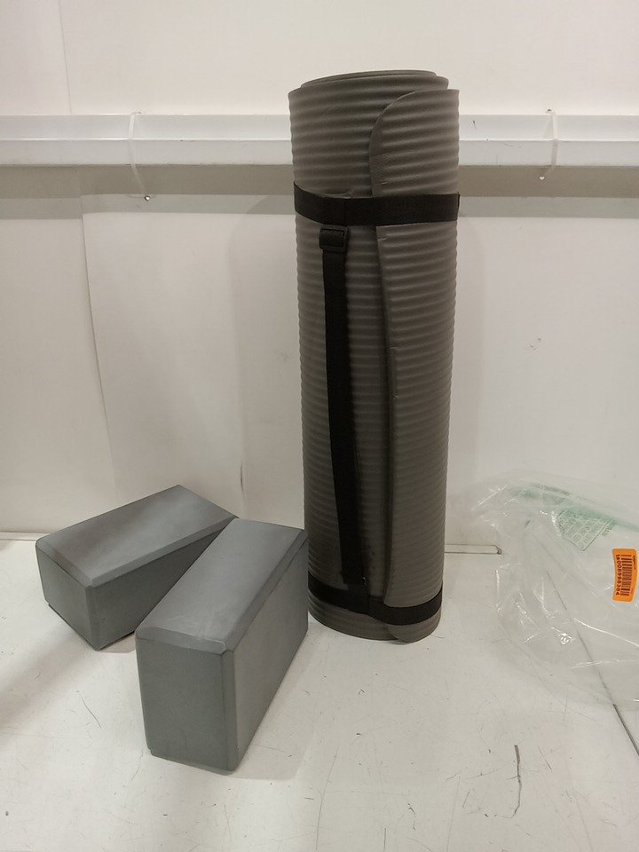 3PC signature fitness all purpose yoga mat and blocks - 24.41" x 11.02" - grey