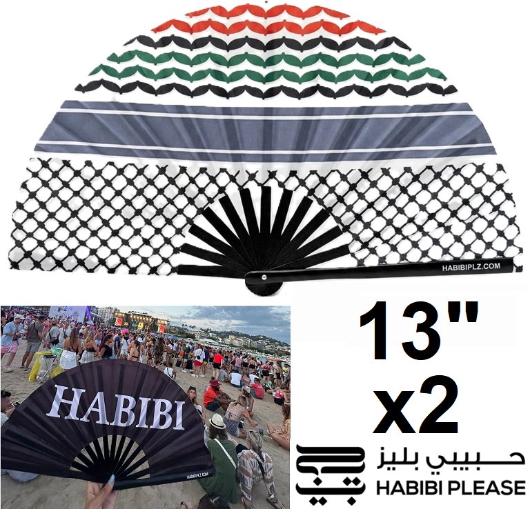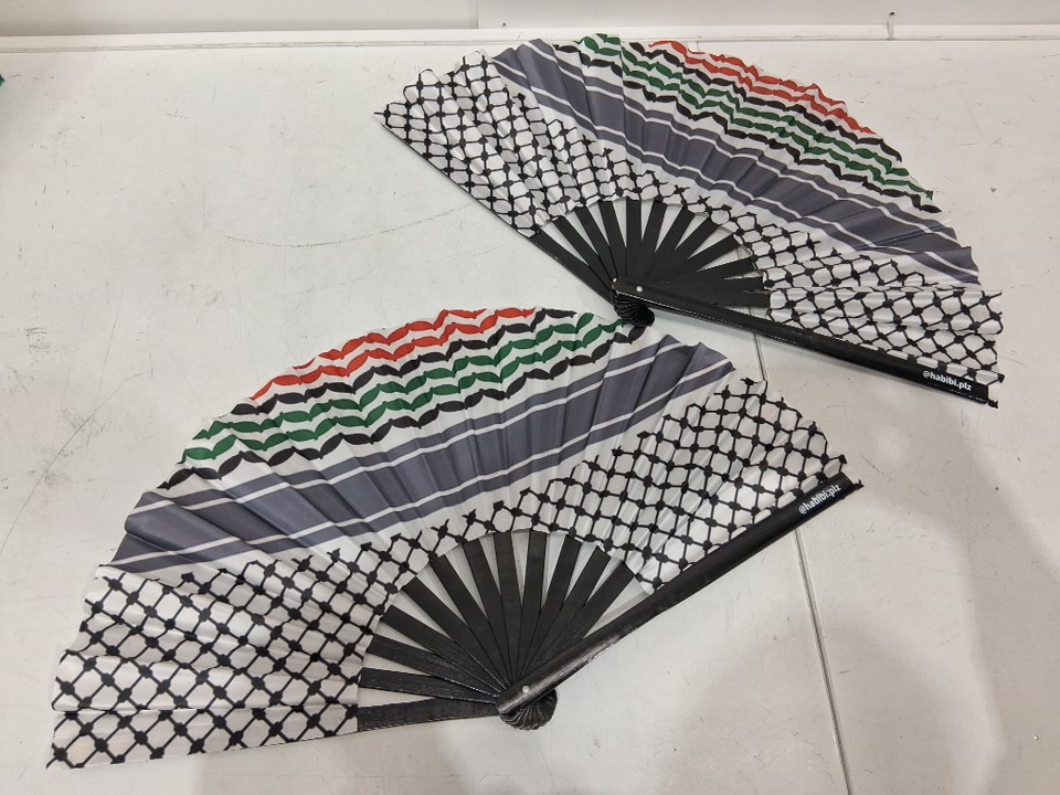 2 habibi please lightweight portable folding Kuffiya hand Fan - 13" - black / white / red