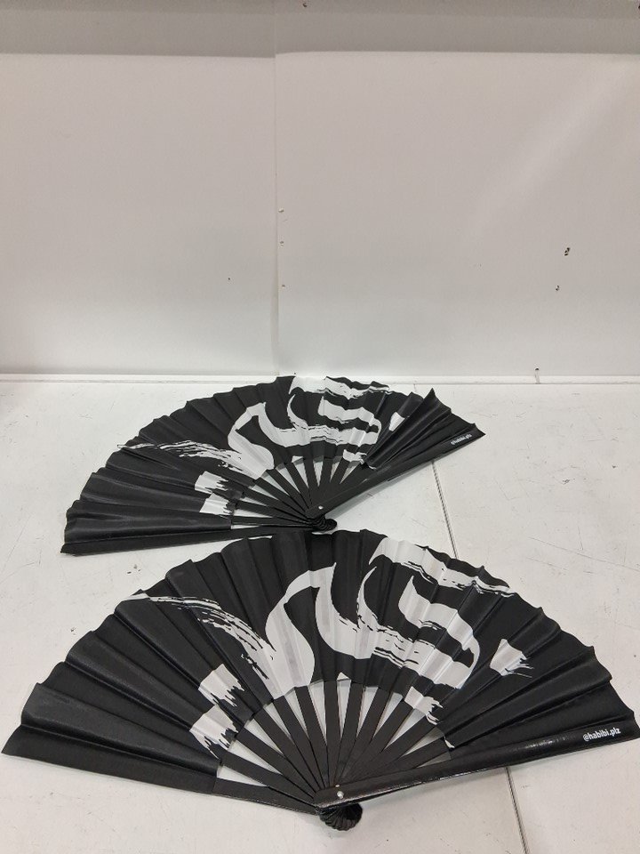 2 habibi please lightweight portable folding Gone Wild hand Fan - 13" - black / white