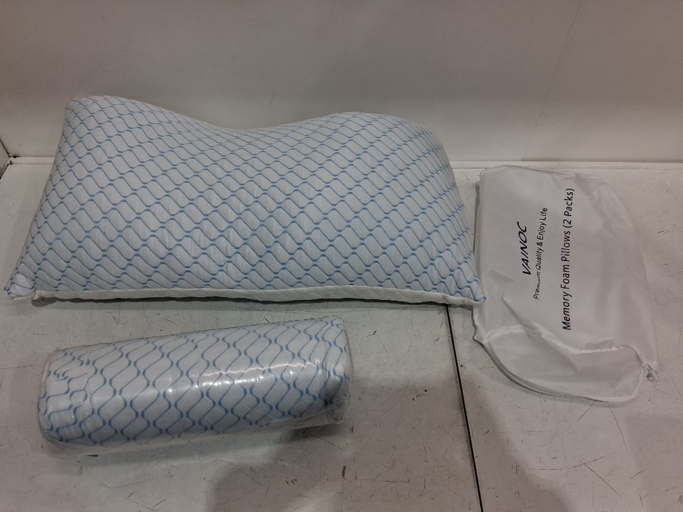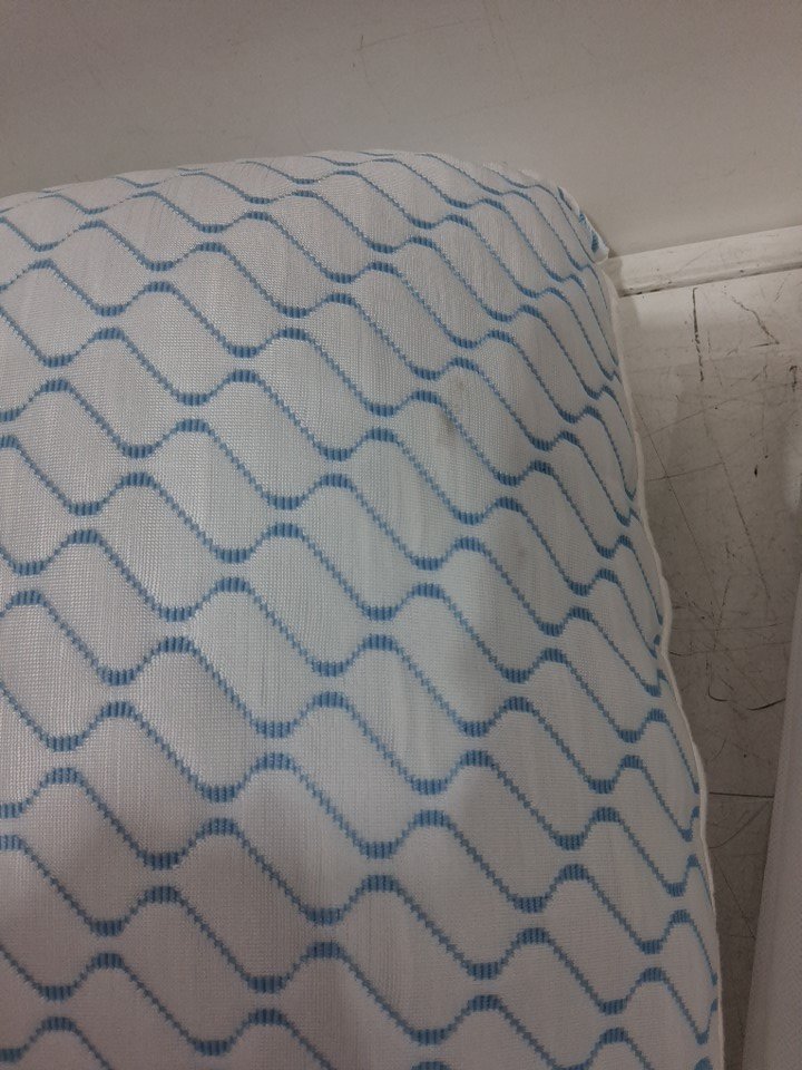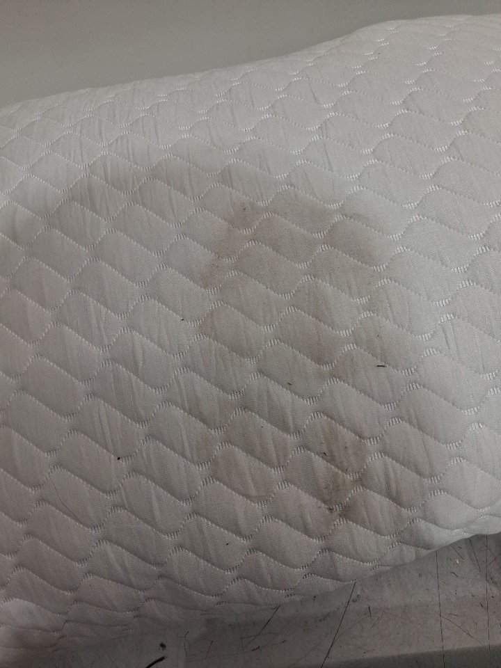 One of the pillows is open, has some staining/marks on it that appears to be from shipping not from use. Cover is removable to be machine washed. See photos