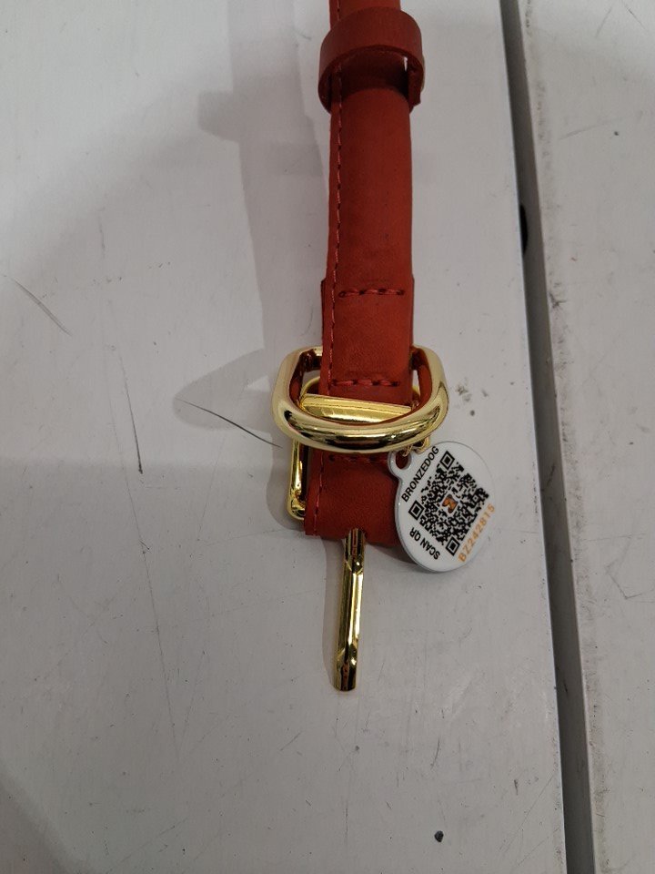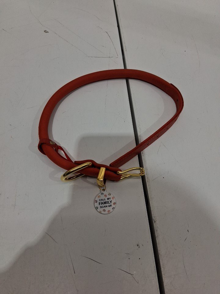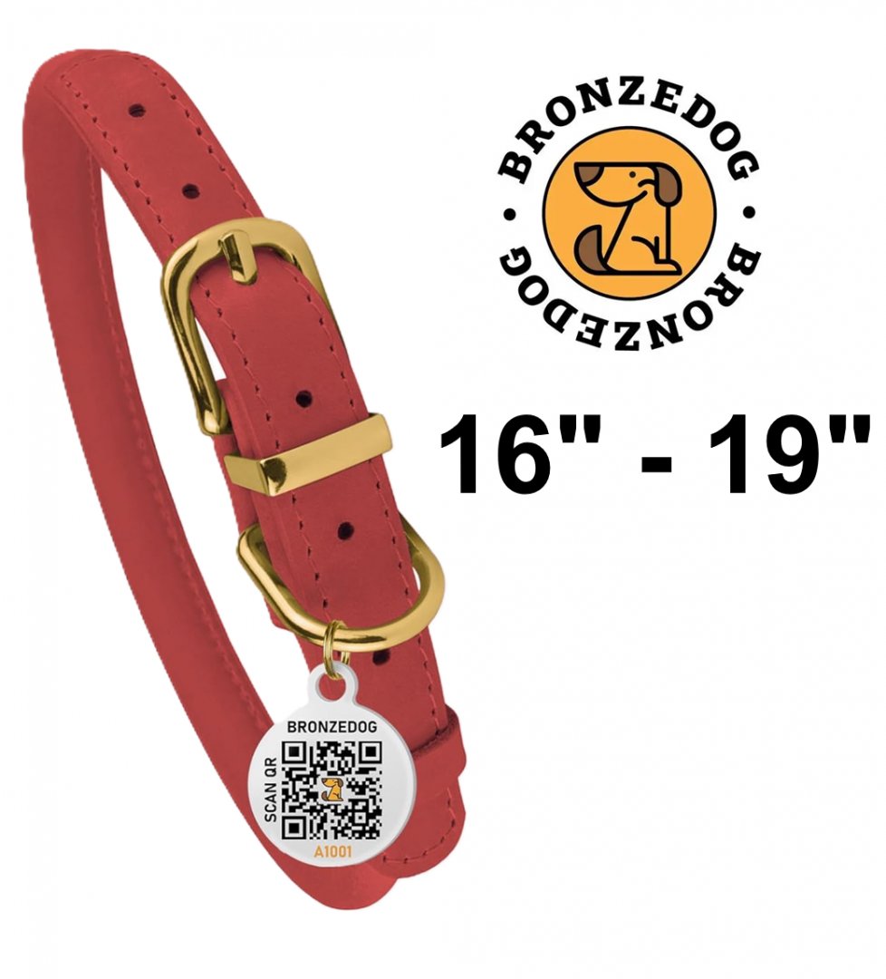 BronzeDog Adjustable Rolled Leather Dog Collar with QR ID Tag - 16" - 19" - orange