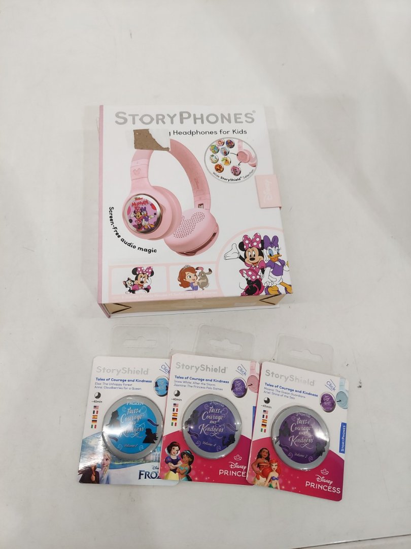 4PC StoryPhones bluetooth headphones Disney PRINCESS BUNDLE WITH 4 STORY SHIELDS FEATURING STORIES ABOUT FROZEN, THE LITTLE MERMAID, MOANA & MORE - PINK (model: ON-STORYPH-DIS-PINK)