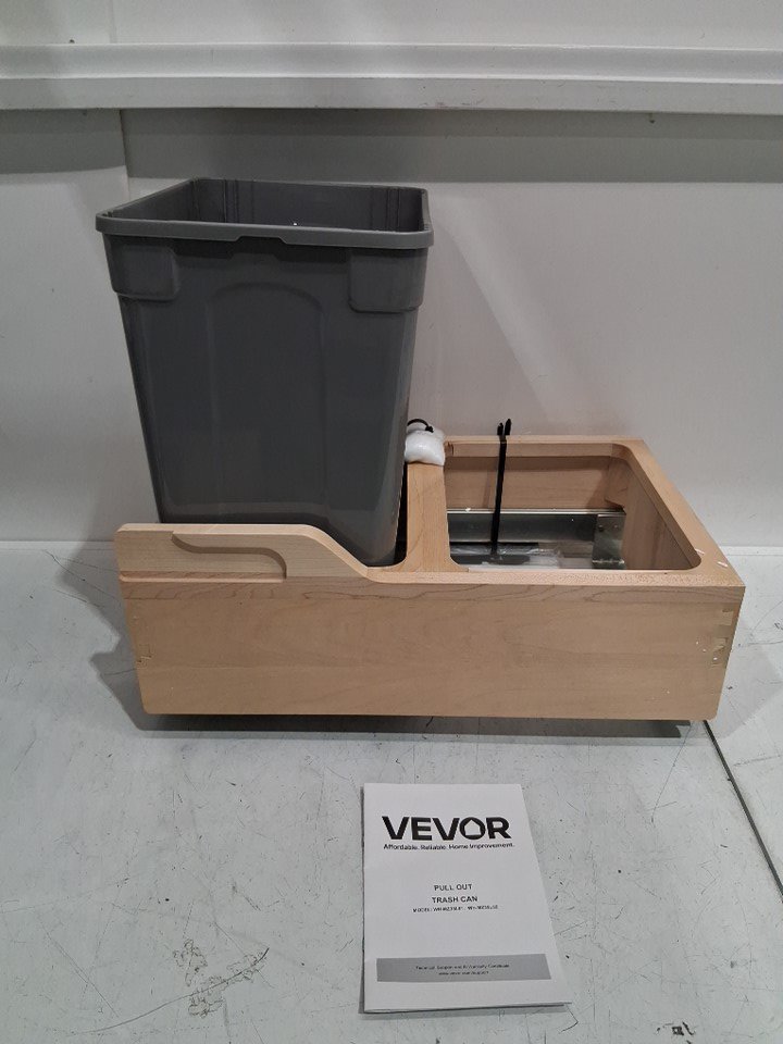Please note that this product is missing one of it's trash cans, it can be replaced here: https://a.co/d/01YTNzrN. This item also contains a minor crack in the wood.