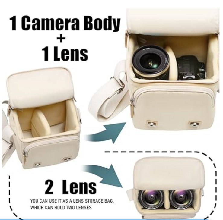 Compact waterproof Canvas Camera Shoulder Bag - for Nikon Canon Sony - beige