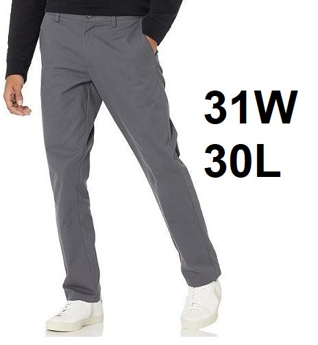 MENS AMAZON ESSENTIALS SLIM-FIT WRINKLE-RESISTANT FLAT-FRONT CHINO PANT - 31w x 30l - GREY