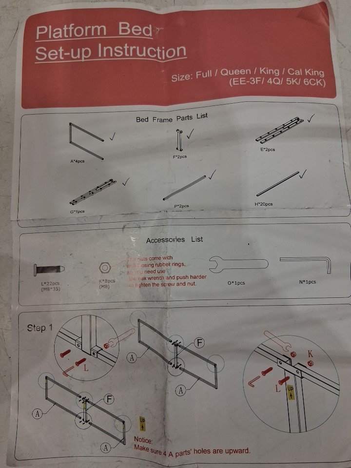 metal platform bed frame - full - black - (MODEL: ee-3f)
