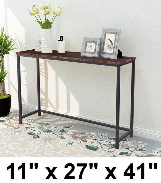 HOMERECOMMEND Skinny Console Table with Charging Station -11" x 27" x 41" - Brown/Black(Model: BF-738B)