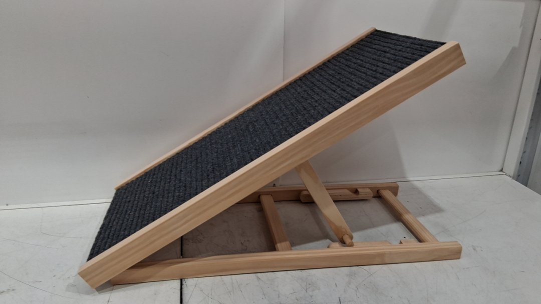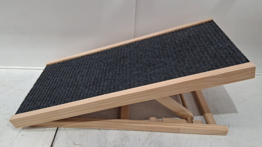 ADJUSTABLE FOLDING WOODEN PET RAMP WITH 2 LEVEL HEIGHT ADJUSTMENT - 27.5"l x 12"-16"h - wood/grey