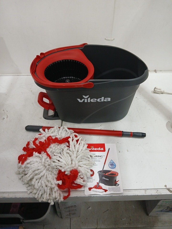Vileda EasyWring Spin Mop Bucket Floor Cleaning System with Power Mop Head and extendable handle - red/grey (model: 172880/ 10683010609981)