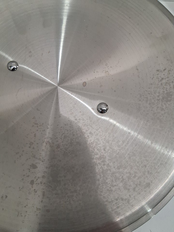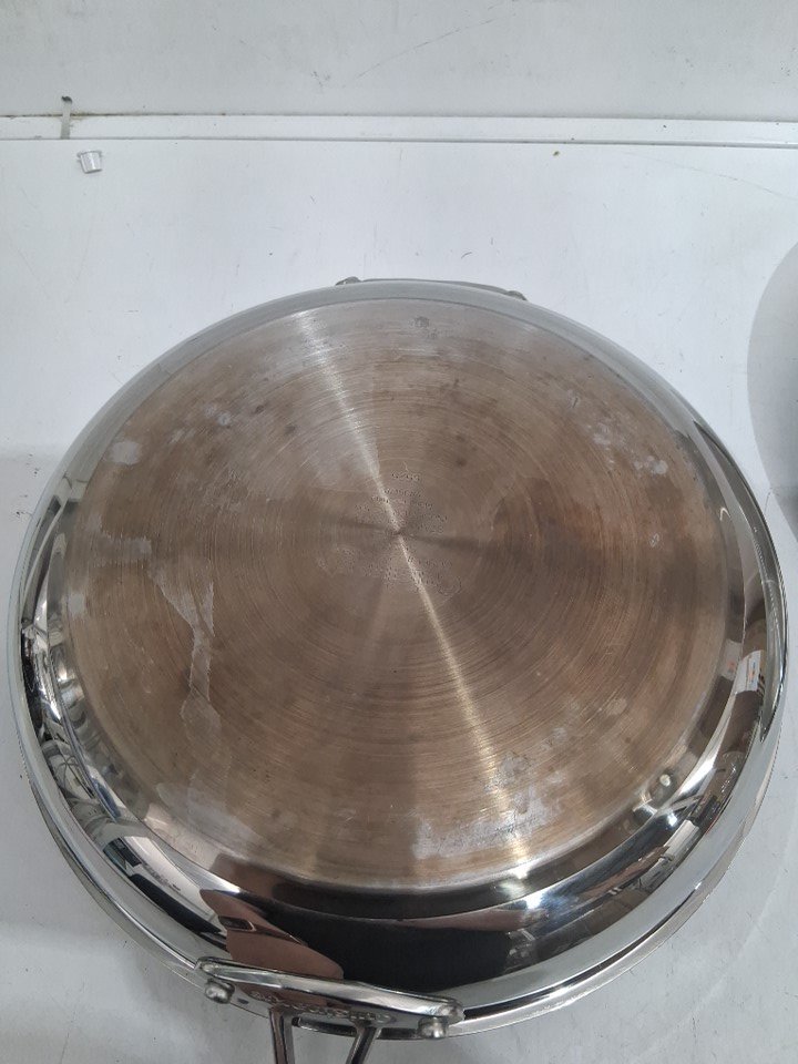 there are water marks on the underside of the lid, some markings around the edge of the frying pan and some burn marks on the bottom (see photos)