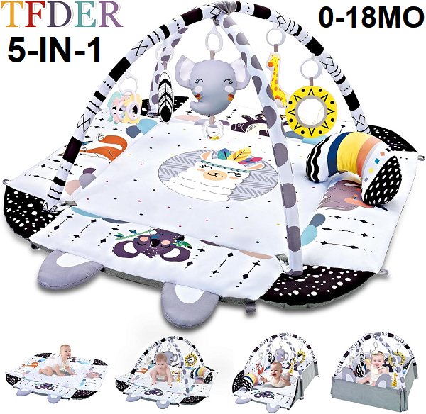 TFDER baby activity gym & play mat & ball pit with Detachable Toys - 39.4" x 43.3" x 21" - black and white