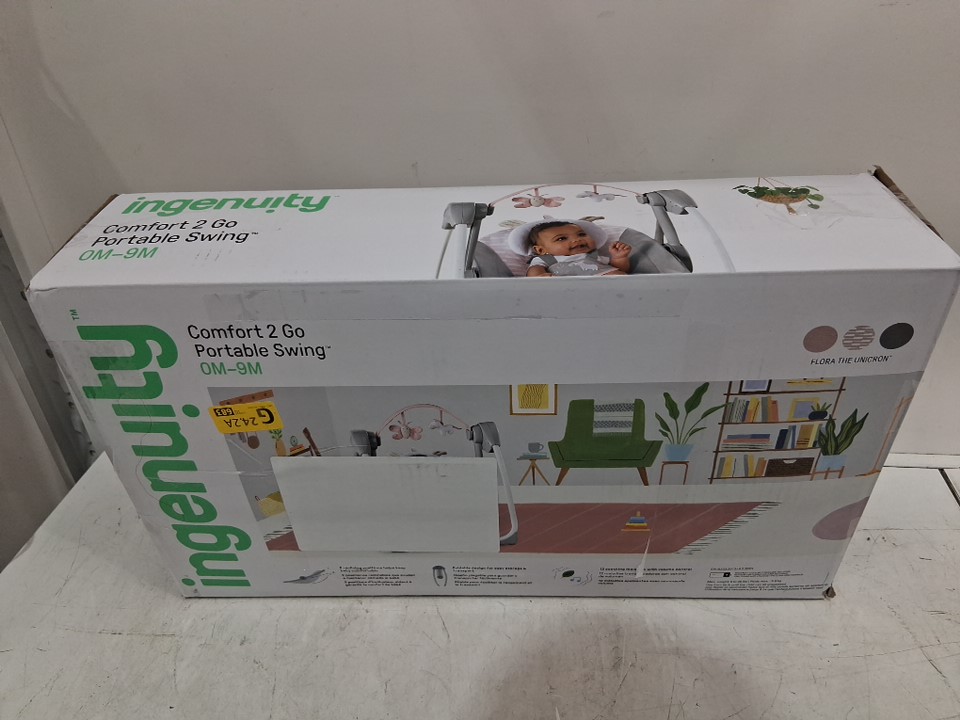 INGENUITY COMFORT 2 GO PORTABLE SWING COMPACT SWING WITH TRUESPEED - PINK - FLORA THE UNICORN (MODEL: 12202-ES)