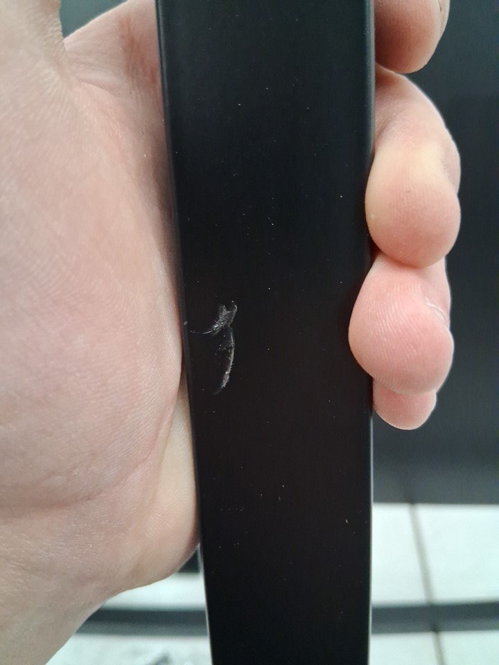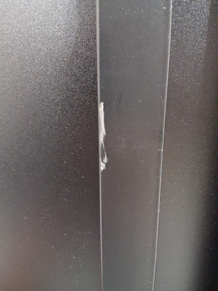 There is one paint chip on both of the square leg frames due to shipping and handling, the rest of the pieces look new/good.