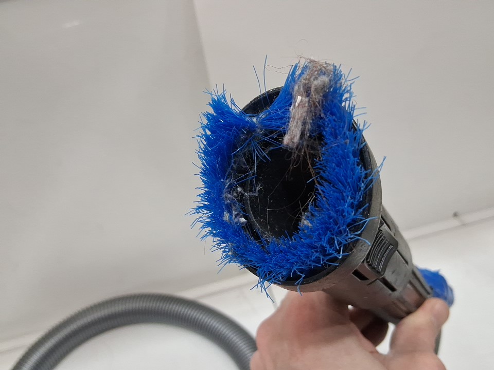 **Tested for power and suction.** Item has minor dust build-up throughout, some wear on the roller and hose attachments, a few light scuffs/markings along the exterior from previous use, see photos.