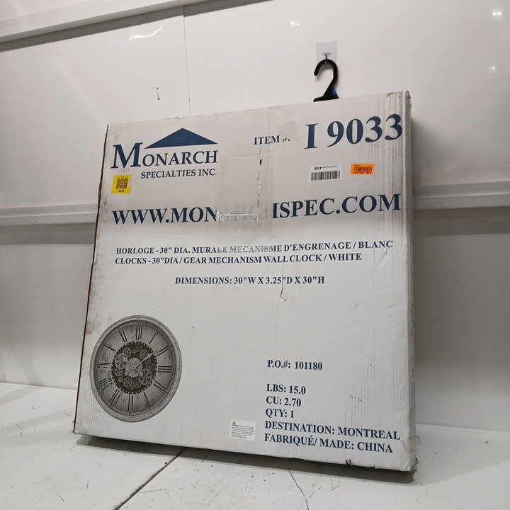 Monarch Specialties oversized mechanism gear clock - 30" - White - (Model: 9033)