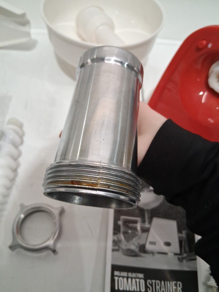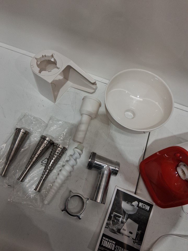 Light use indicated by the small remnants of tomatoes in small various spots. See image details. Tested for power.