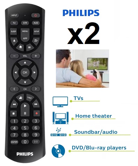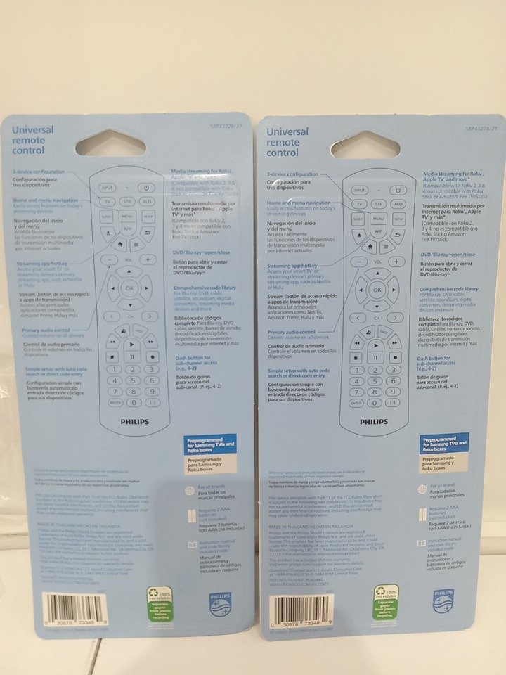 2 Phillips Universal Remote Control - preprogrammed for Samsung TV's, Roku boxes and more (model: SRP4322B/27)