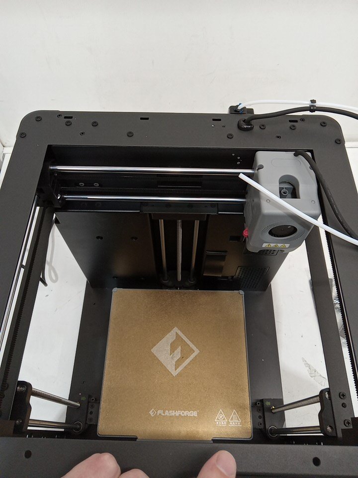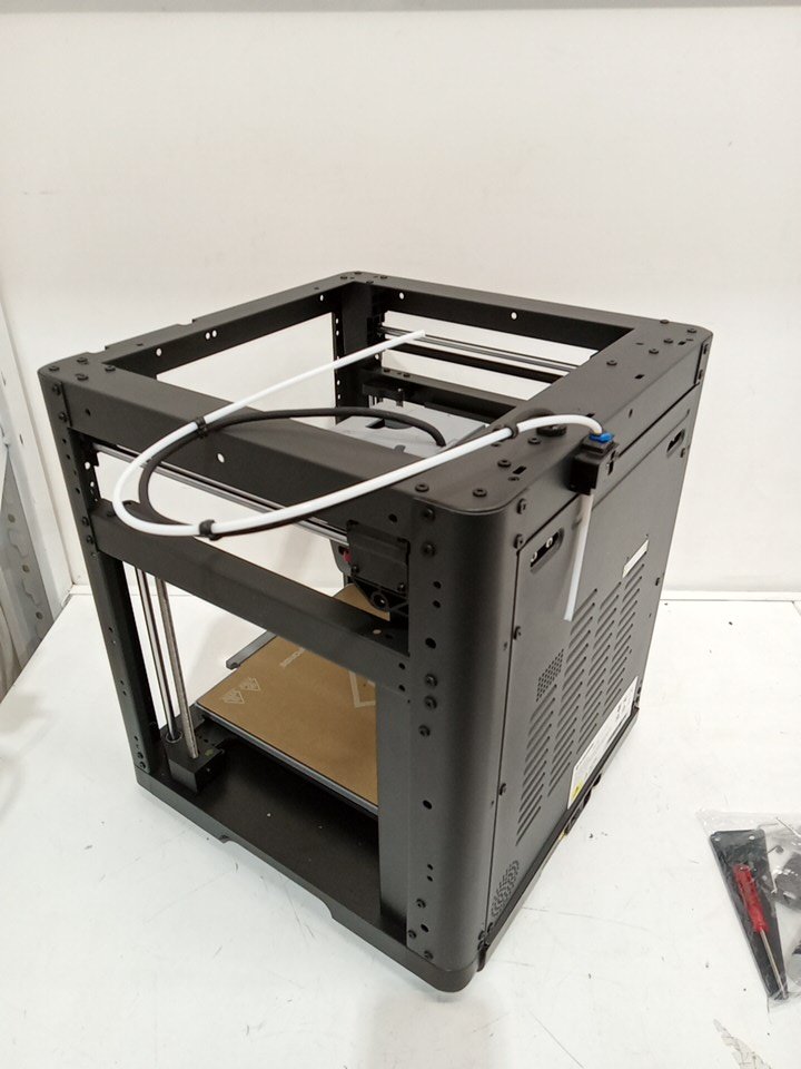 Item shows signs of being previously used prior to being returned. There are some slight scuffs on the bed, and housing of the item as well as some filament residue around the hot end/nozzle assembly. Item tested for power, axis movement, bed and nozzle heat.