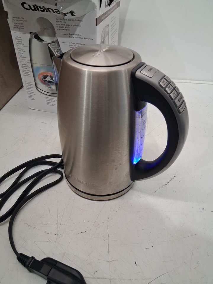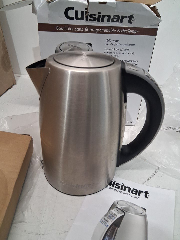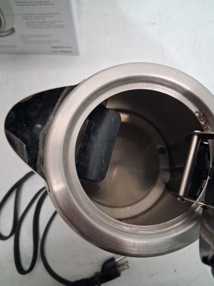 kettle has calcium build up and water spots inside. Kettle has faint scent from previous use. Has been tested for power