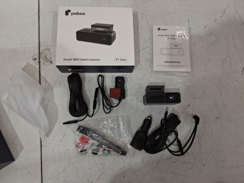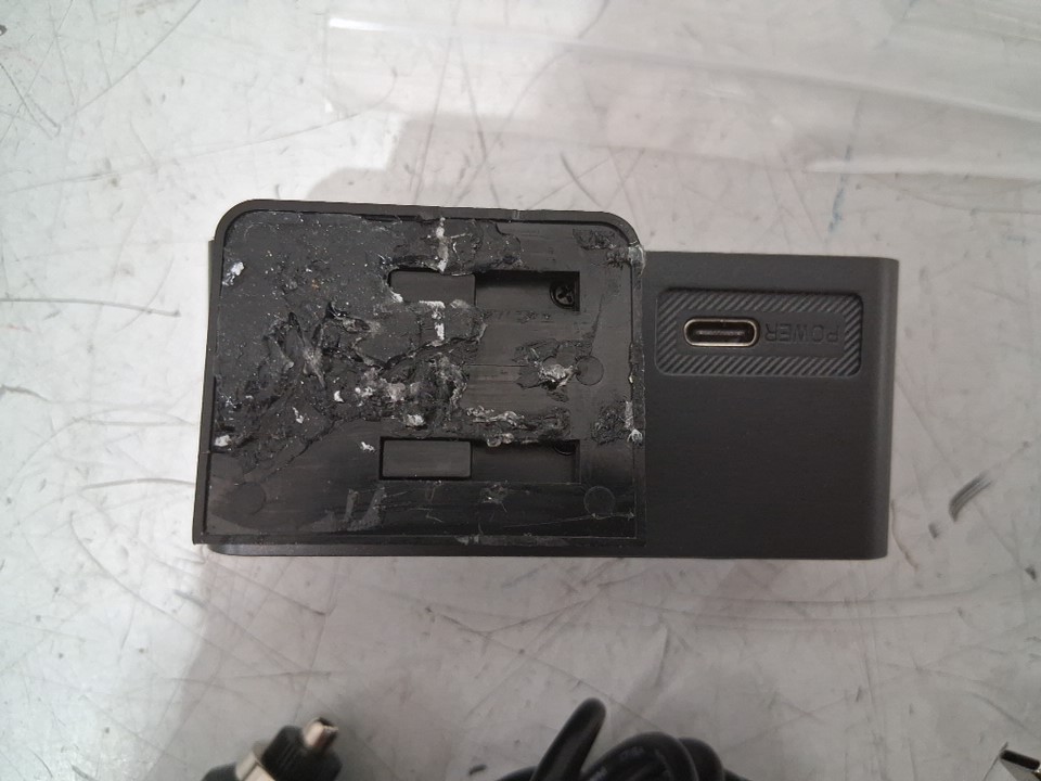 tested for power. please note what looks like the adhesive on the dash cam is distressed, the item may need new adhesive. see photos.