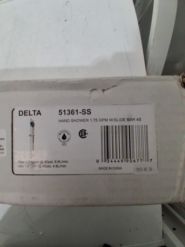 DELTA UNIVERSAL SHOWERING HAND SHOWER WITH SLIDE BAR - 1.75 GPM - 80 PSI - STAINLESS STEEL - (MODEL: 51361-SS)