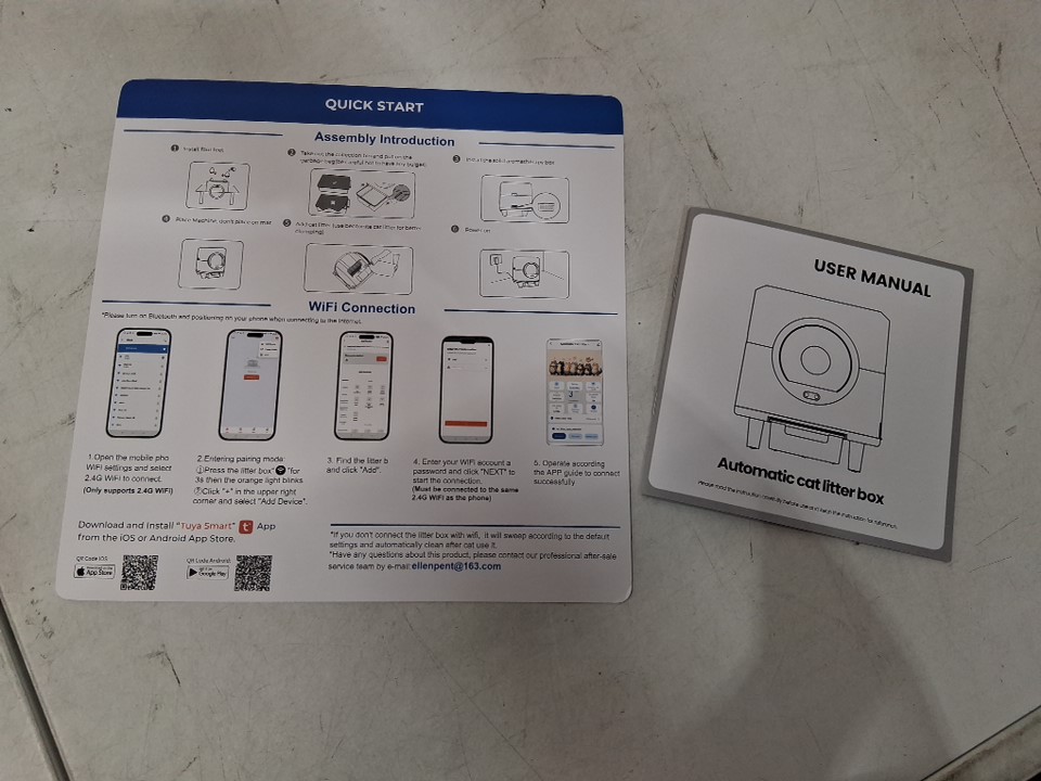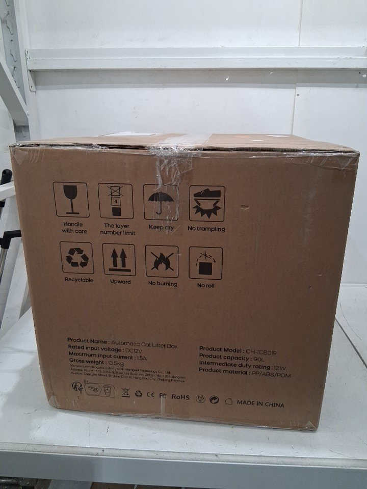 ELLENPENT AUTOMATIC SELF-CLEANING CAT LITTER BOX WITH APP CONTROL AND SAFETY SENSOR - 90L CAPACITY - GREY/WHITE (MODEL: ch-icb019)