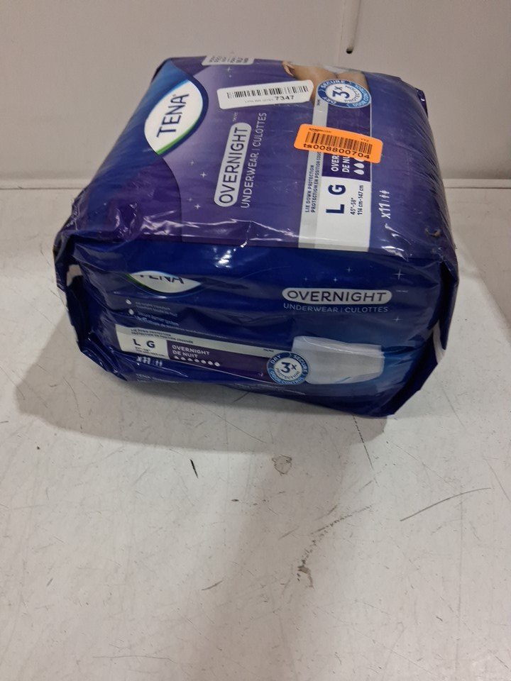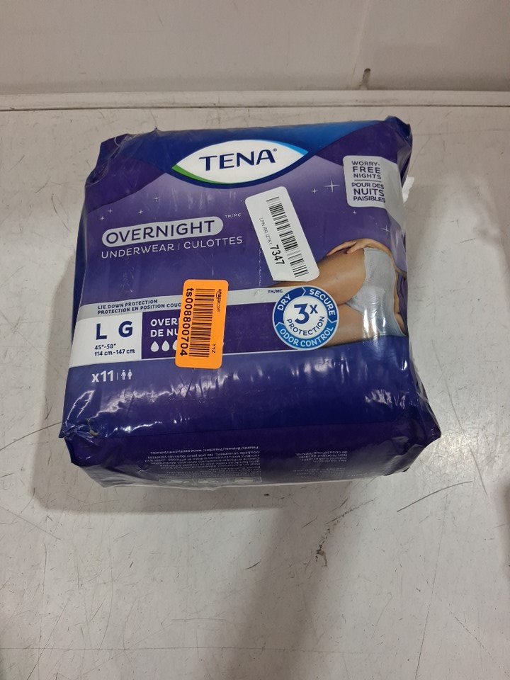11pk UNISEX TENA DISPOSABLE OVERNIGHT ABSORBENT UNDERWEAR WITH LIE-DOWN PROTECTION - LARGE (45" - 58") - WHITE