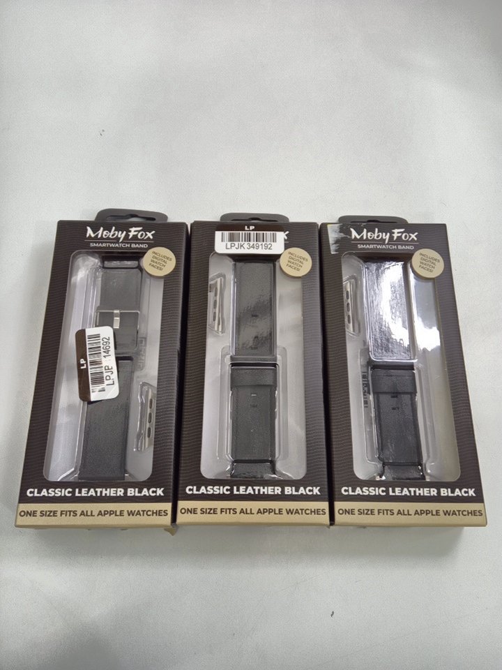 3 unisex moby fox classic leather smartwatch bands - one size fits most apple smart watches - black