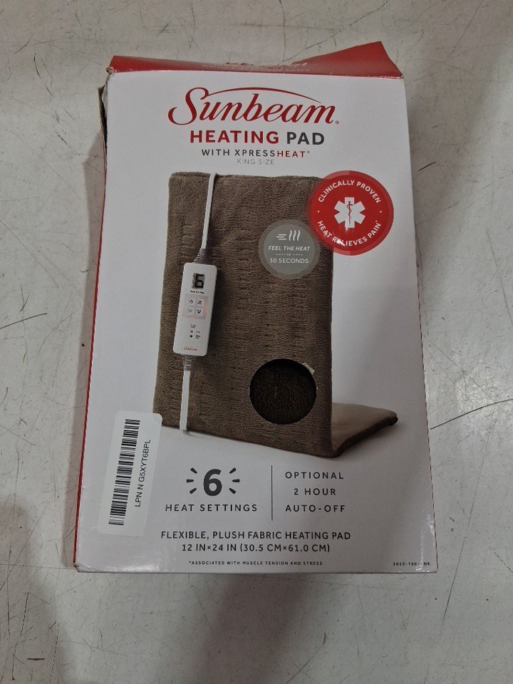 SUNBEAM XPRESSHEAT 6-SETTING PLUSH HEATING PAD - KING SIZE (12" X 24") - BROWN (MODEL: 2013-760-CNR)