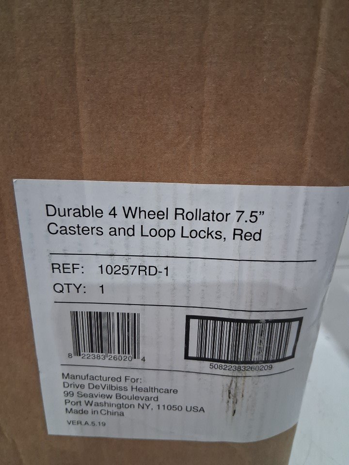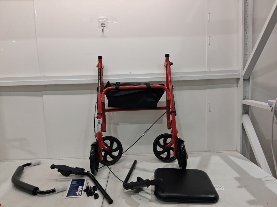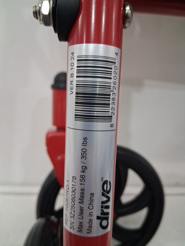 DRIVE MEDICAL 4 WHEEL ROLLATOR WALKER STURDY STEEL FRAME WITH BASKET FOR PERSONAL ITEMS 7.5" CASTER WHEELS IDEAL FOR INDOOR AND OUTDOOR USE - RED (MODEL: 10257RD-1)