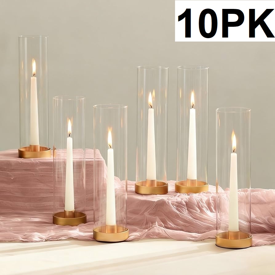 10PK Nuptio Hurricane Candlestick Holders - glass\gold