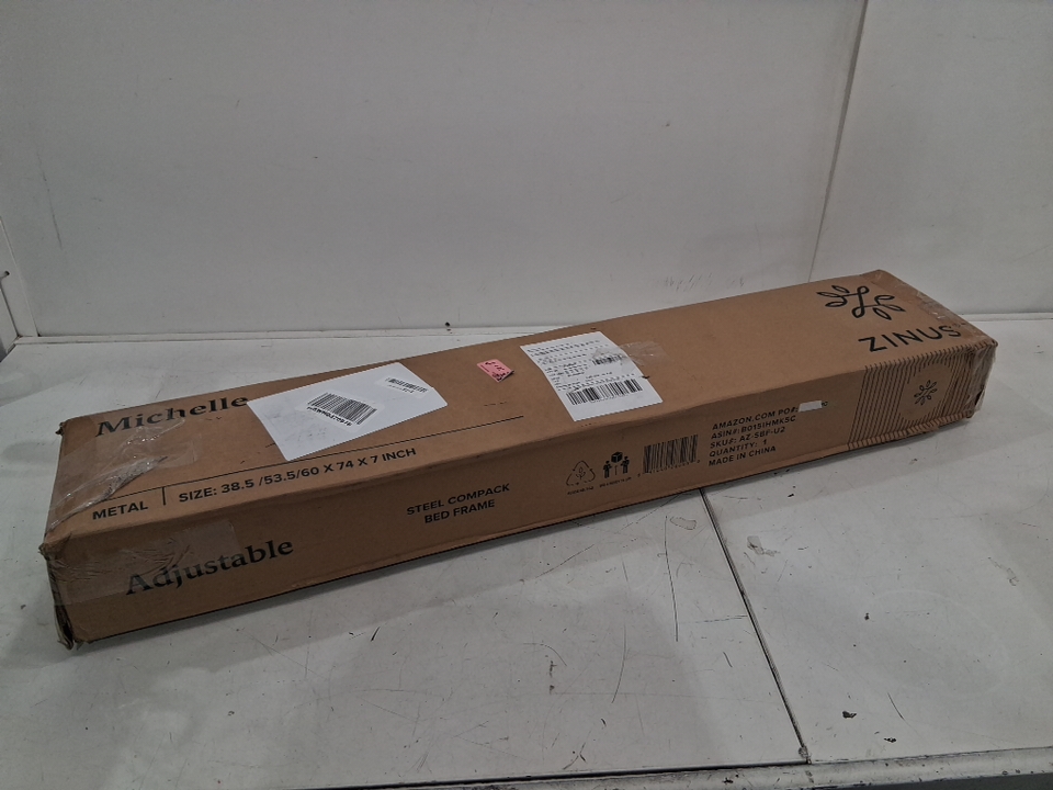 ZINUS MICHELLE COMPACK ADJUSTABLE STEEL BED FRAME - ADJUSTS FROM TWIN to QUEEN - 38.5" - 60" x 74" x 7" - BLACK (MODEL: AZ-SBF-U2)