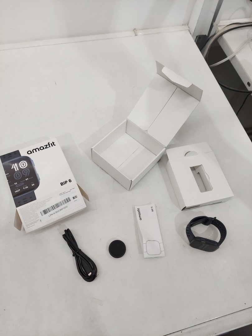 unisex Amazfit Bip 6 Smart Watch fitness tracker - 46mm, 1.97" AMOLED Display, GPS, AI, Bluetooth Call & Text, 140+ Workout Modes, 5 ATM Water-Resistance - Blue/Black (model: a2435)