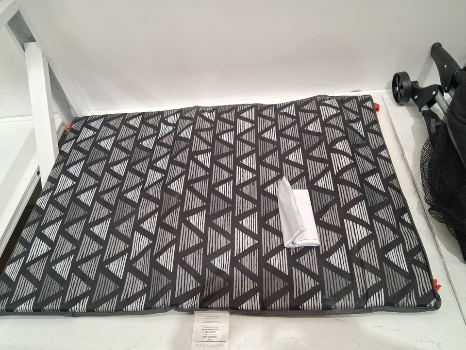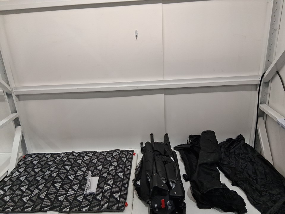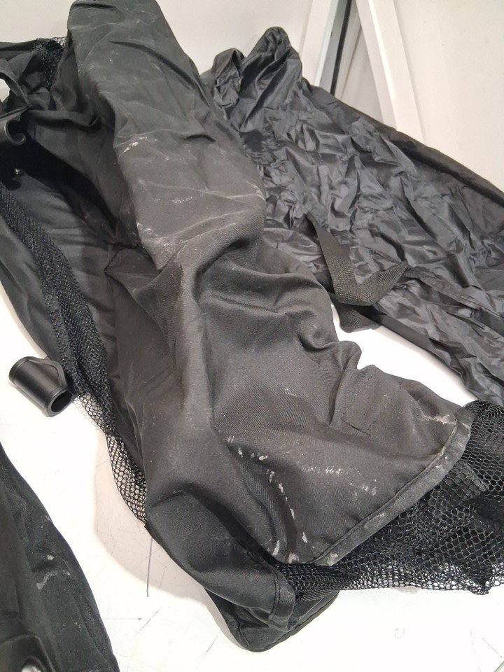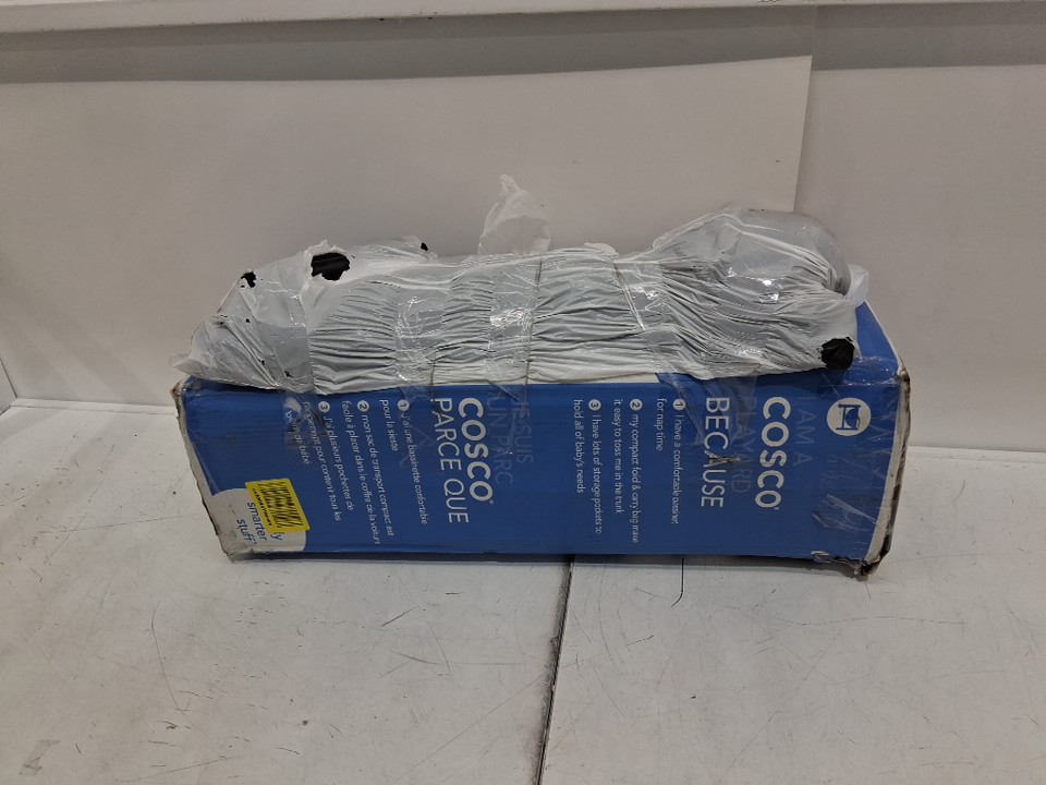 please note the product was discovered to be covered in dust, dirt, and scuff marks, this can be cleaned. along with this we discovered one of the sides would not lock into place, we are unsure if this is broken or just stuck, please see photos for more details