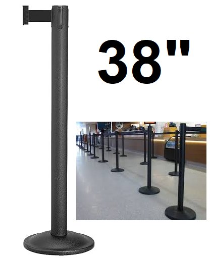 Lavi-industries Retractable Belt Stanchion STAND for Queue Lines with 7FT Belt - 38" - BLACK