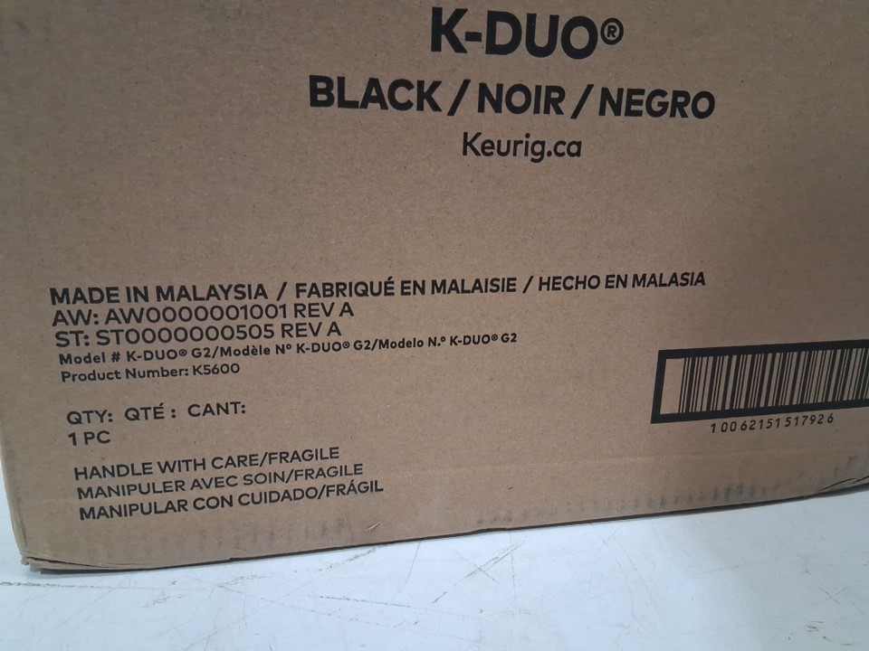 KEURIG K-DUO SINGLE SERVE & DRIP COFFEE MAKER - 12 CUP GLASS CARAFE - BLACK (model: K5600)