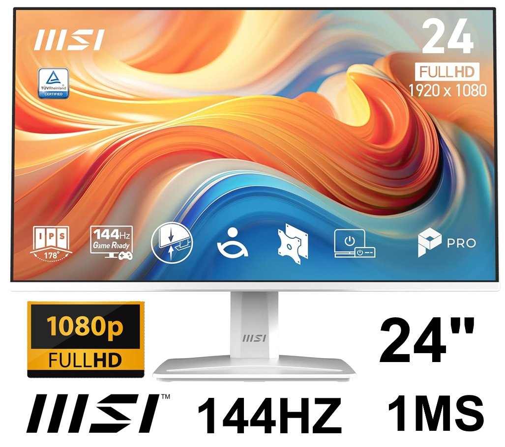 MSI 24" Pro Series Business & Productivity Monitor with Tilt Stand, Non-Glare Display & 4-slide slim bezel - 1080P FHD - 144hz - 1ms - White (Model: MP243W-E14)