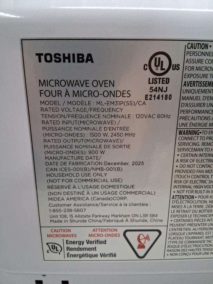 TOSHIBA COMPACT COUNTERTOP MICROWAVE OVEN - 1.2CU.FT/1500W - STAINLESS STEEL (MODEL: ML-EM31P(SS)/CA)