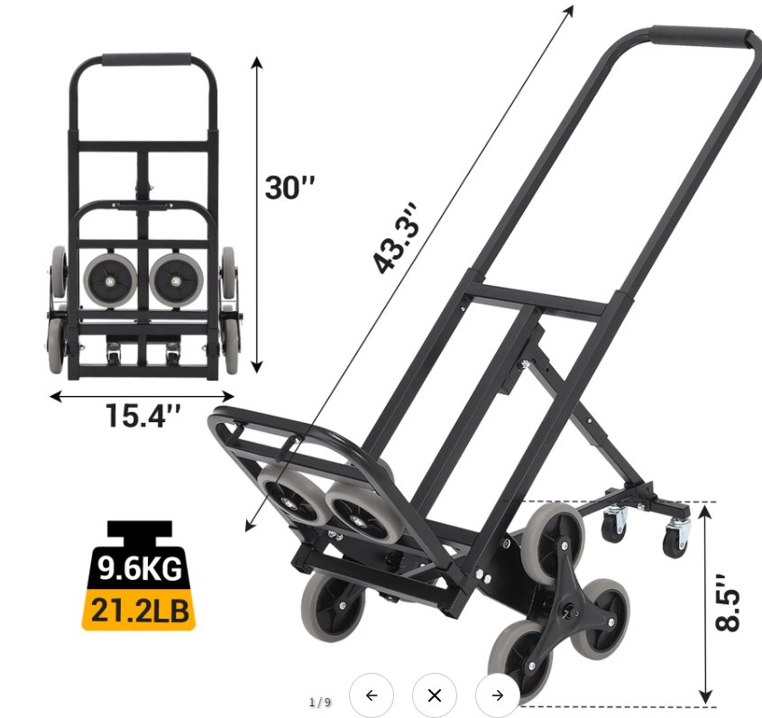 Garvee Stair Climbing Hand Truck Cart with TPR Triangle Wheels - 375LBS capacity - black (model: pis_0132thkq)