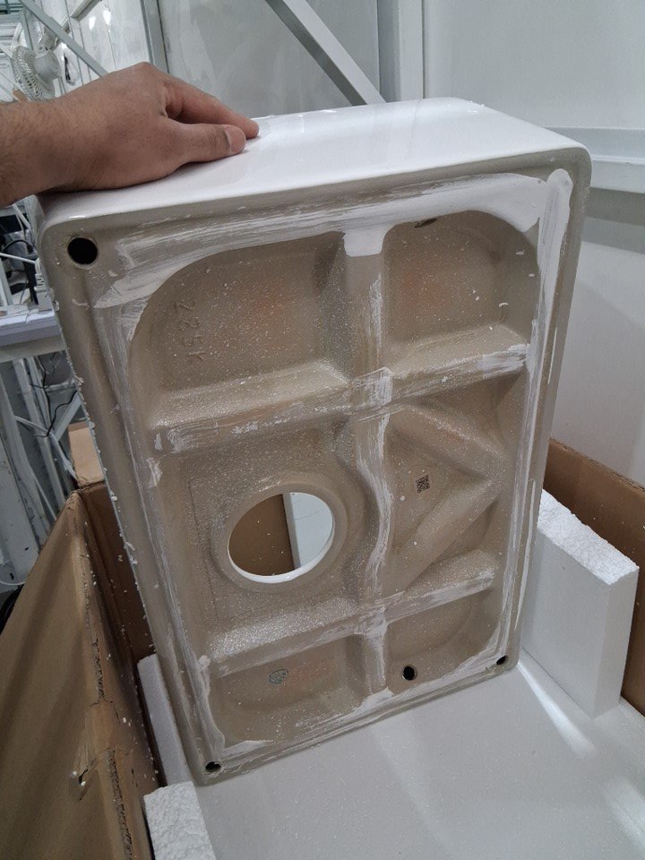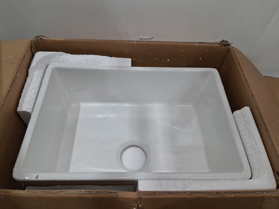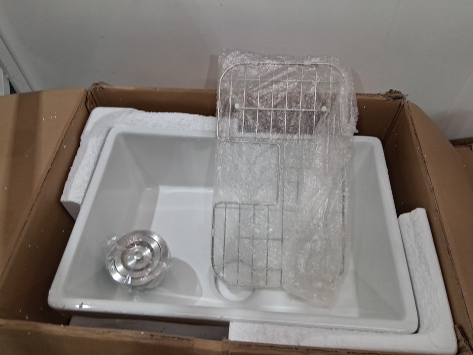 meje Farmhouse Ceramic Apron-Front Sink with Strainer & Bottom Grids - 24" x 16" - white (model: mj-285k)