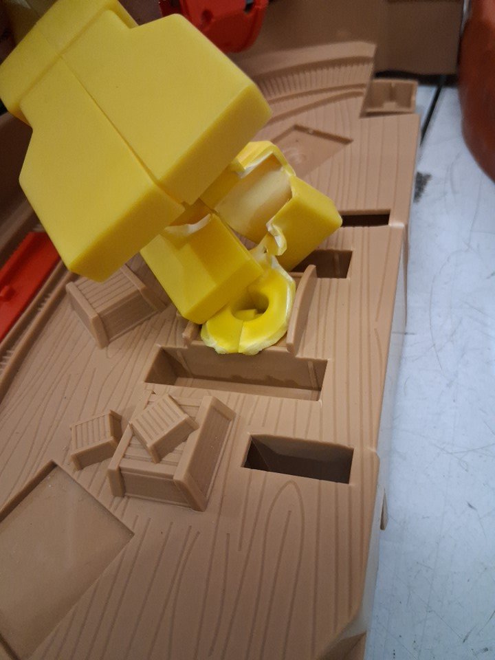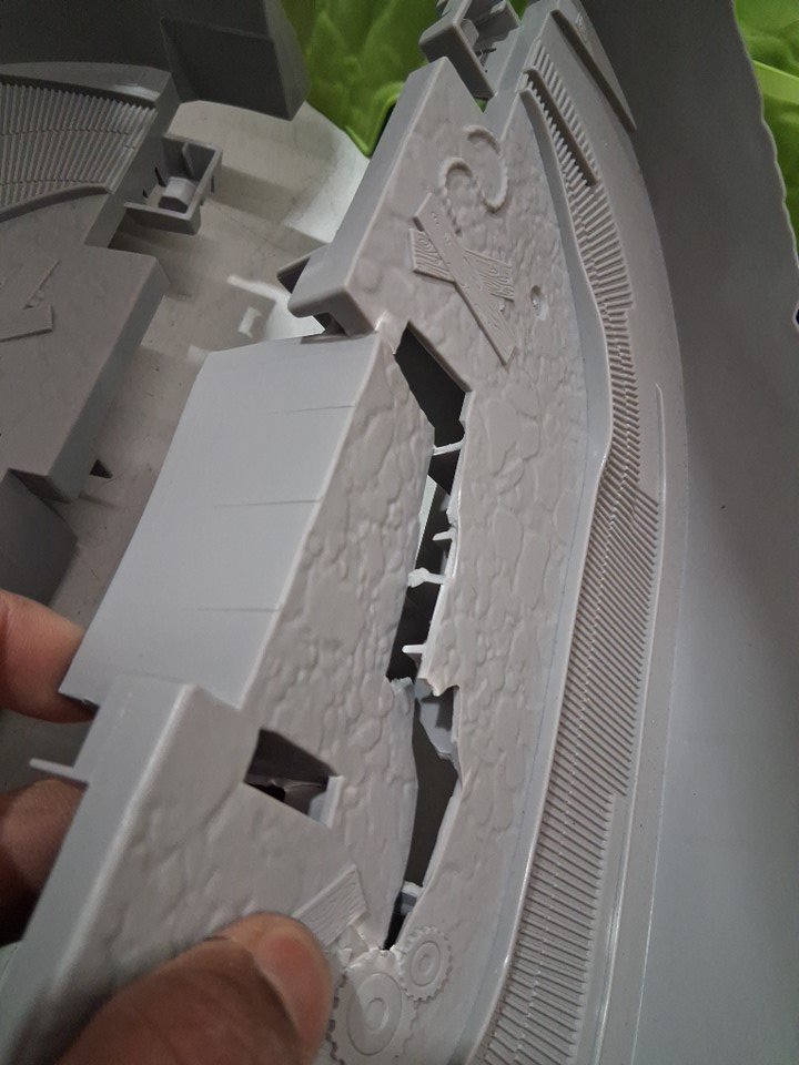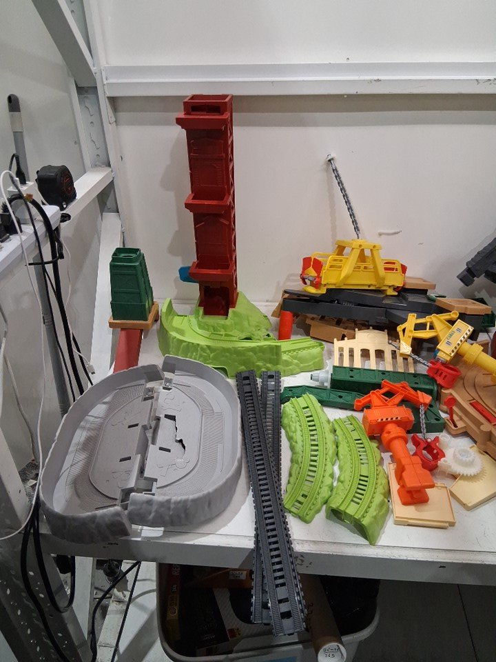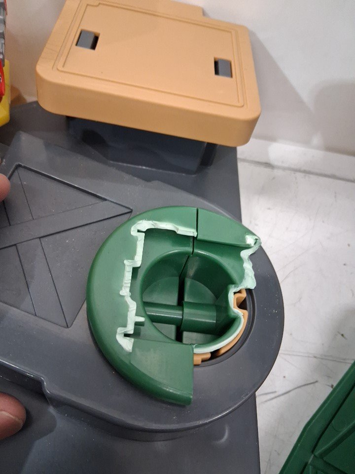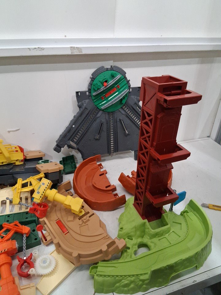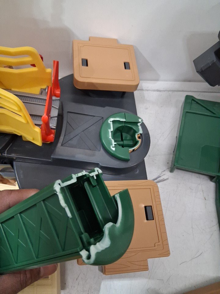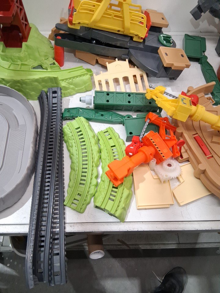 please note that there are so many parts which are damaged due to shipping without retail packaging and it is missing green train toy. few of the parts can possibly joint back together. see photos for more details.
